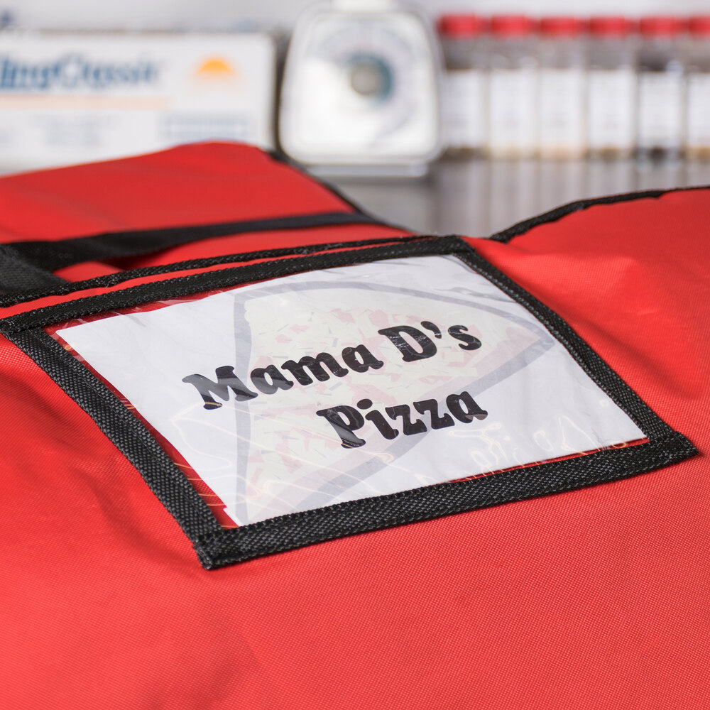 For your convenience, a transparent ID window on the exterior of the bag provides your staff with a safe place to store menus, coupons, receipts, or even business cards.