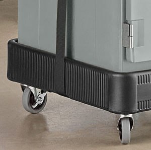 Quickly and safely transport these 2 pan carriers with the included dolly and strap. This dolly can transport up to 300 lb. of stacked food pan carriers. This dolly also boasts 4" non-marking swivel casters to reduce damage to floors and features rounded corners to reduce impact damage on walls. Plus, two casters have brakes to secure the unit in place when needed.