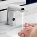 As opposed to standard faucets with pull-down handles, which require repeated personal contact for use, this product enables hygienic handwashing. When ready to wash hands, the intuitive faucet sensor detects motion and releases warm, tempered water, while an auto-timeout feature shuts it off after 10 seconds. Plus, to deliver water from your main line to the faucet, this unit includes a flexible, stainless steel water supply hose with 3/8" connection. This model features built-in Bluetooth technology for easy adjustments that can be made right from your smartphone or tablet. It's also compatible with the Commander handheld programming unit (sold separately) to allow for more comprehensive modification of modes and ranges, with adjustable run times to help you save water. Easy to install, this faucet has a single hole for deck mounting and a 6V lithium CRP2 battery for operation.