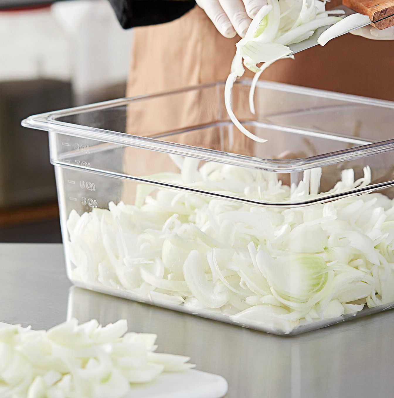 Thanks to the clear material, this food pan offers optimum visibility for quick product identification. Plus, it includes capacity indicators molded in the side in both liter and quart measurements so that you can quickly and easily do inventory management and measure out how much you need of any product.