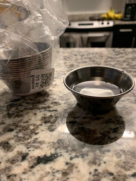 We're using this to provide sauces to our dine-in customers. The size and shape are both great. The material is sturdy enough to hold a good amount of sauce.