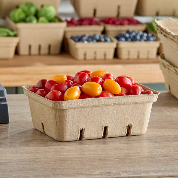 Upgrade your display with this Choice pulp produce basket and make a positive impact on both your business and the environment! Made of molded pulp, this basket is an eco-friendly alternative to plastic that allows you to showcase berries, apples, peaches, green beans, and a variety of other produce.