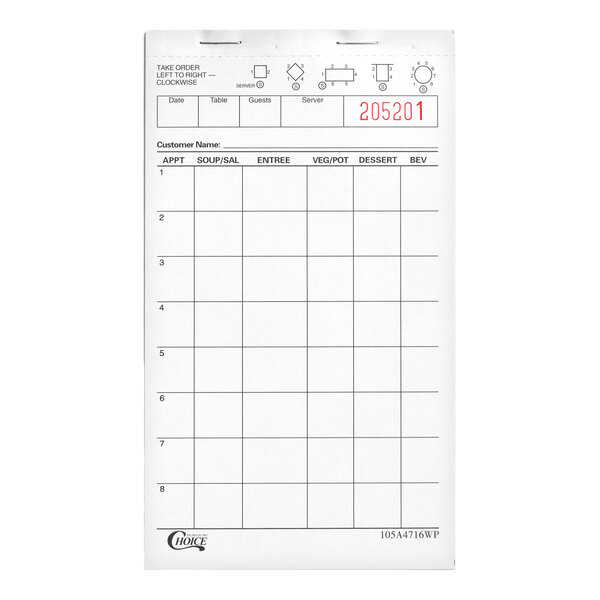 I love using this server pad because it helps with organization. It has the seat numbers already on the pad and there are categories at the top to help separate each course. The only downfall is that servers may have to abbreviate their writing so that it fits in the box. Some servers write too big and this makes them unorganized.