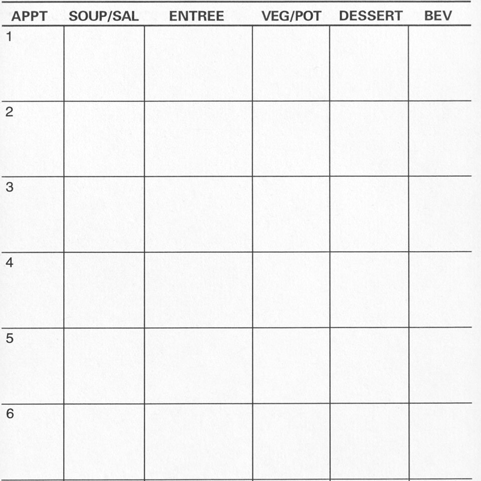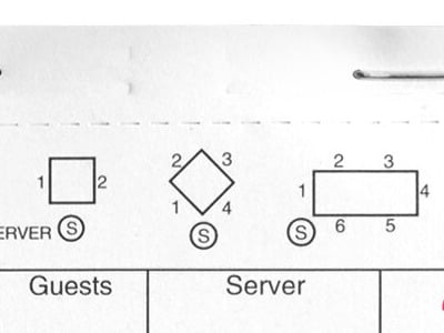 I love using this server pad because it helps with organization. It has the seat numbers already on the pad and there are categories at the top to help separate each course. The only downfall is that servers may have to abbreviate their writing so that it fits in the box. Some servers write too big and this makes them unorganized.