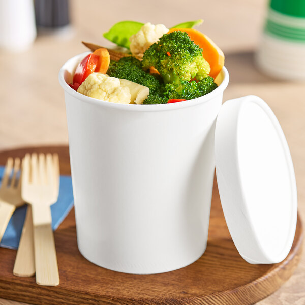 A tight-fitting lid is included with each container to provide secure, reliable transport from one location to the next. Along with the cup's double-wall insulation, the non-vented lid also works to ensure that your food is kept at the appropriate temperature, allowing your customers to enjoy their tasty treats at their convenience.