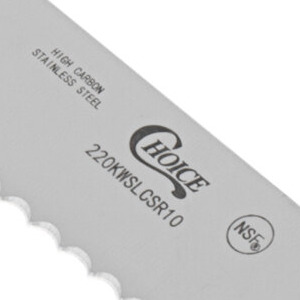 I am in receipt of the 10" Serrated / Wavy Edge Bread and Sandwich Knife and it is a solid serrated knife. It will easily cut through your thin sandwiches and thick large subs. The handle is comfortable in hand, and the blade is corrosion resistant. A beautiful knife at a decent price.