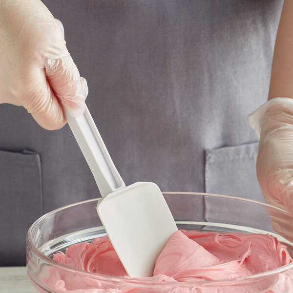 This Choice spoonula's molded, flexible design allows it to easily and thoroughly scrape batter out of mixing bowls without scratching or damaging them. With this spoonula you can gently fold chocolate chips, nuts, and other mix-ins into batter with ease.
