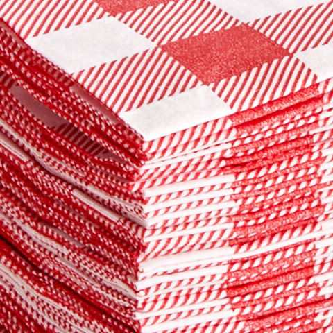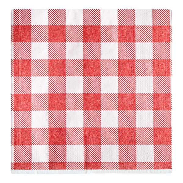 Add a splash of color to your next social gathering with these Choice red gingham colored beverage / cocktail napkins.