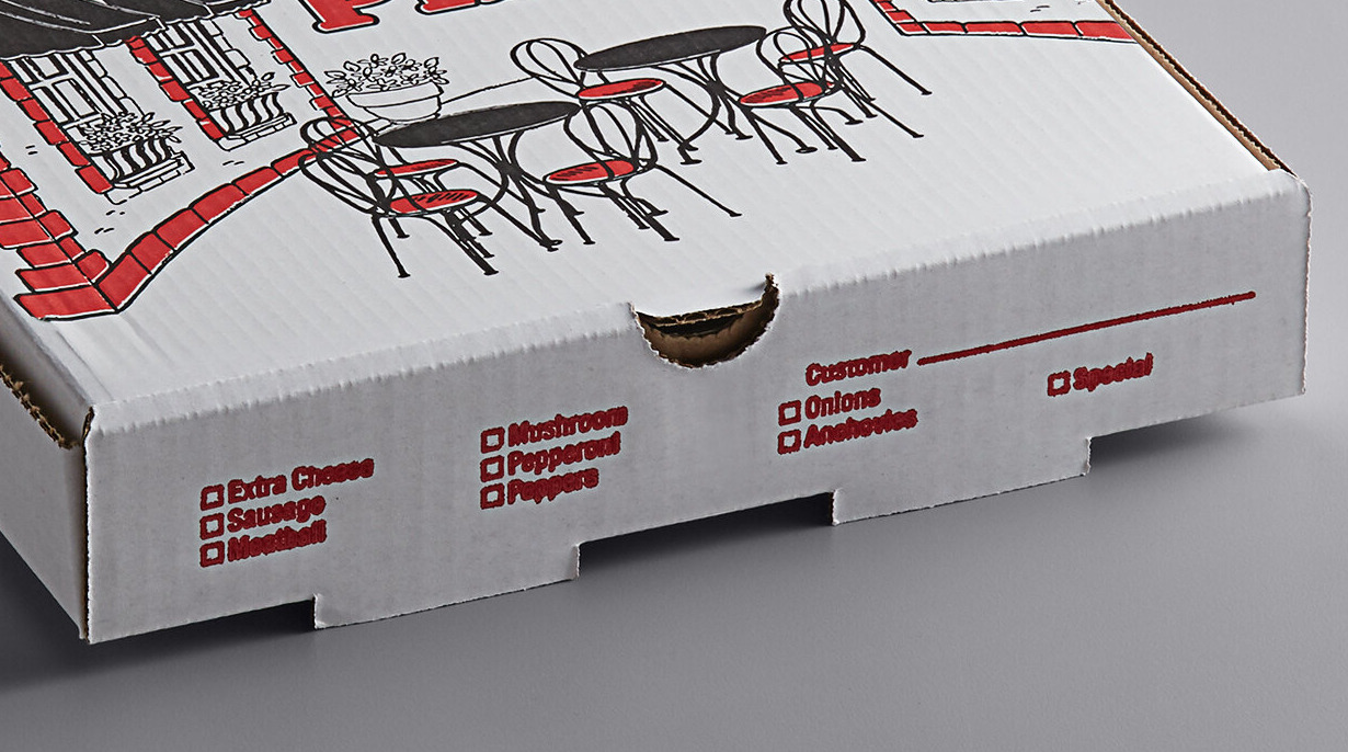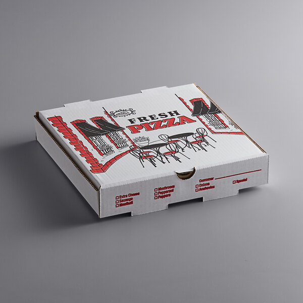 Once your guests have finished eating, this convenient printed box is recyclable for fast clean up. Plus, it features a convenient ingredient check list on the side, enabling you to mark each pizza's toppings for fast order identification at your pizza parlor, Italian restaurant, or convenience store.