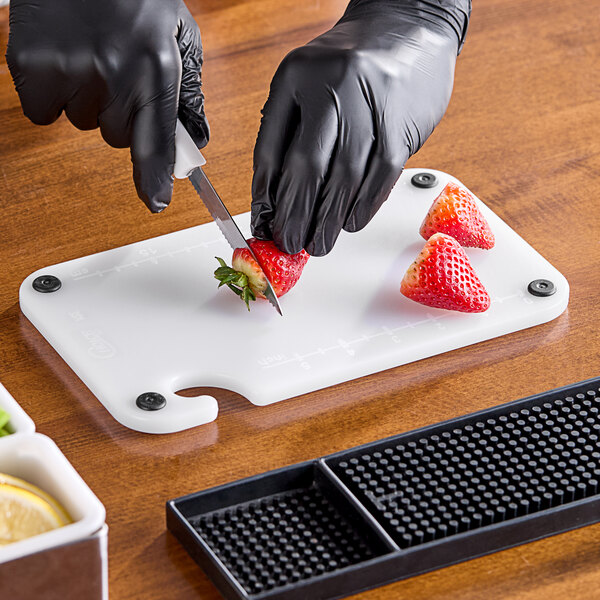 Cleaning the cutting board is simple, saving your staff time and energy. This white board is intended for cutting up dairy and bakery items at your restaurant, cafe, or catering company! The compact size also makes this board perfect for preparing garnishes behind the bar where work and storage space is limited.