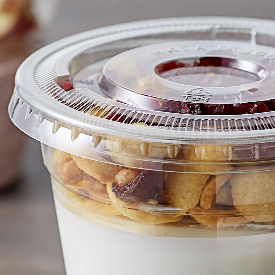 Perfect for yogurt parfaits, veggies and dip, or other snack combos, this cup expertly showcases your colorful snacks and ensures fast product identification with its crystal clear construction. It also keeps your offerings secure with its crack-resistant design. A must-have for any kiosk, concession stand, fast food restaurant, or to-go establishment, this cold cup with insert and dome lid is the perfect addition to your venue.