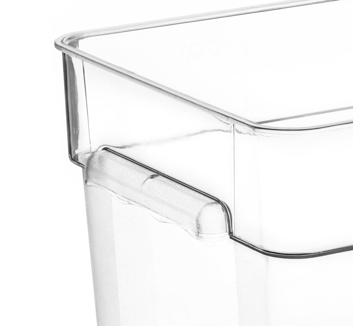 The virtually-unbreakable polycarbonate design guarantees the longevity you need in your commercial kitchen. Plus, the crystal-clear design takes the guess work out of trying to identify what food product is stored inside.