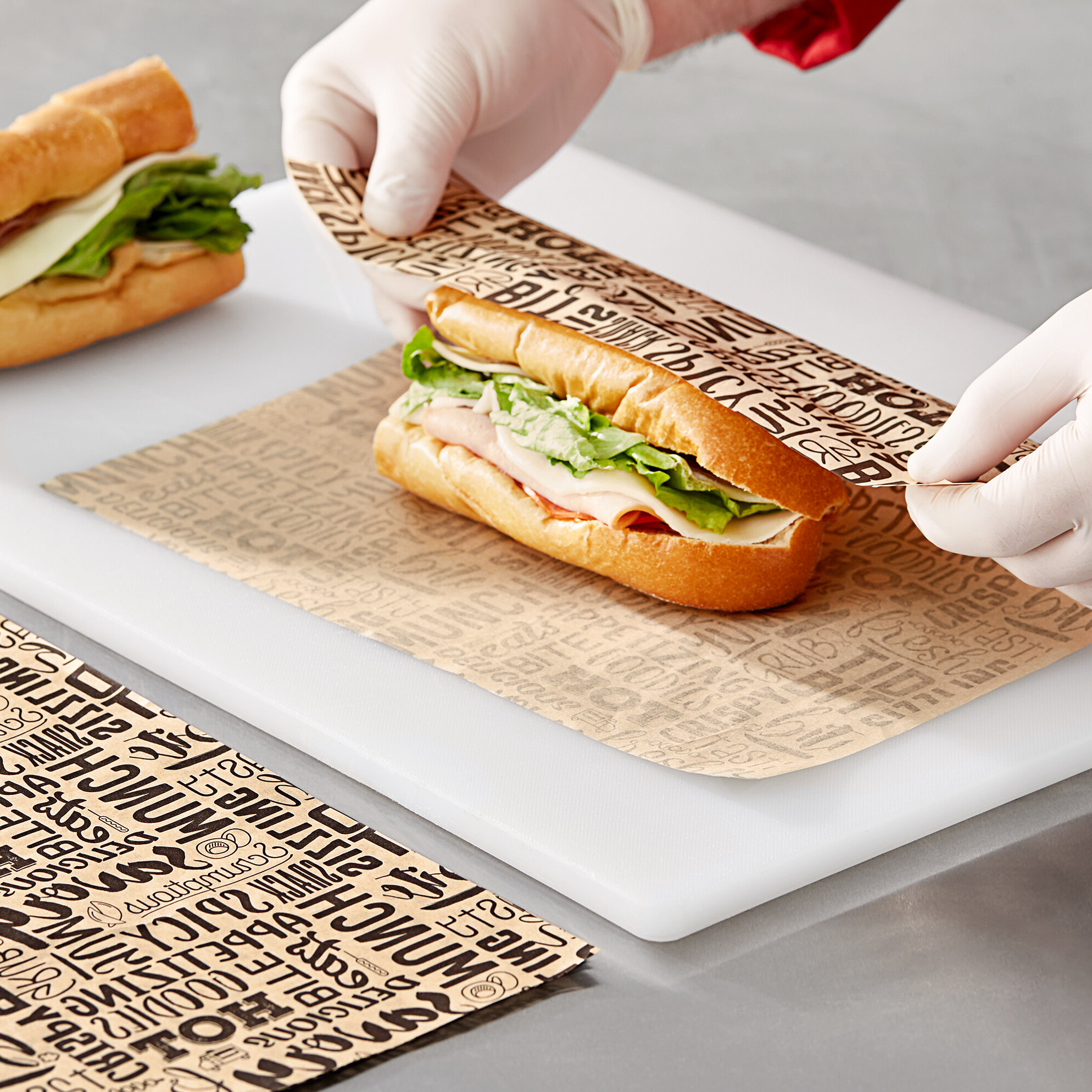 This deli wrap should be an essential in all delis! It is very durable and great quality. It does not rip easily and also fits wraps and paninis.