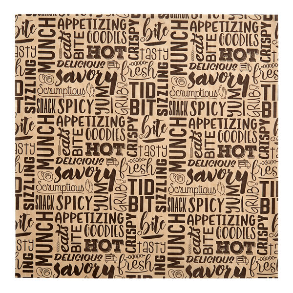 Choice 12" x 12" Kraft Hot / Savory Print Deli Sandwich Wrap Paper - 1,000/Pack