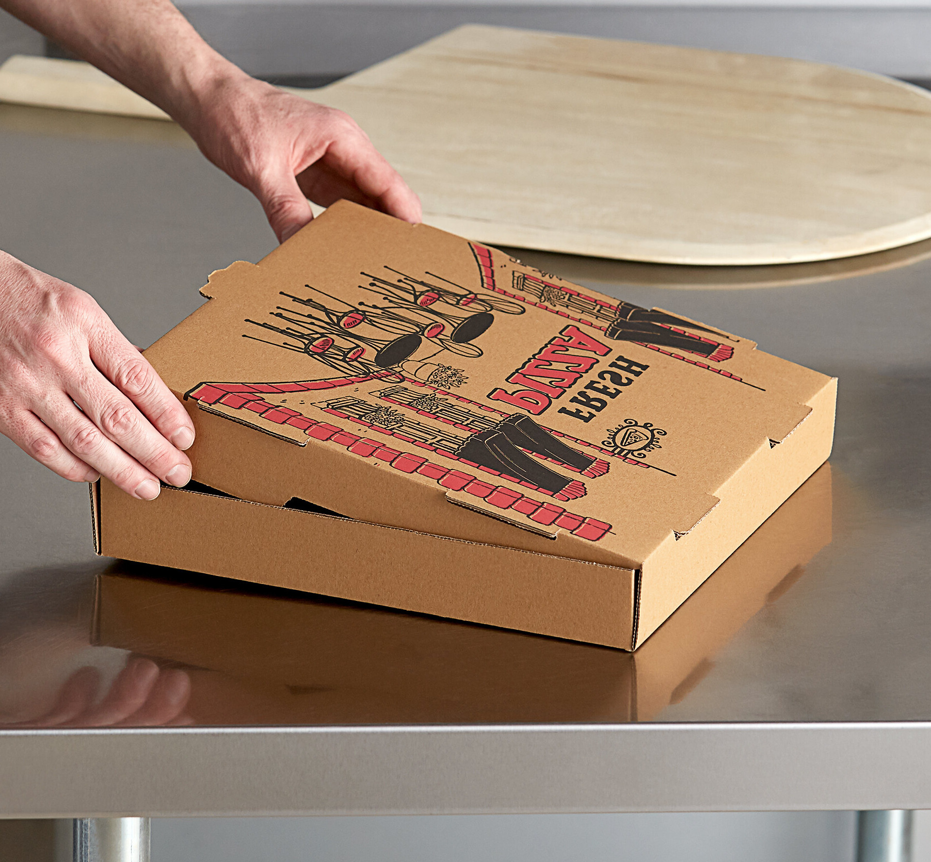 Use these for my pizzeria and love the quality of the corrugated box. Keeps pizzas hotter than traditional pizza boxes. Price is reasonable and shipping is quick.