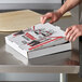 Boasting a 32 ECT grade construction that provides superior stacking strength, this box has a cut-out thumb tab for quick product loading and is great for large deliveries. While its 1/8" thickness provides sufficient insulation to keep orders hot and ready for customers, the two tabs extending from the bottom of the box elevate it to reduce condensation on countertops.