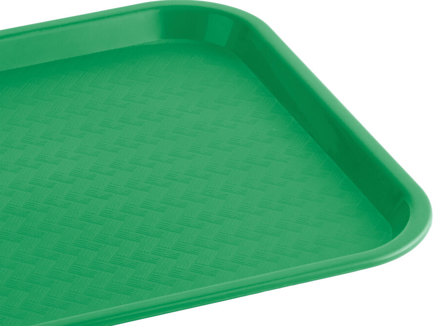 With an economical, lightweight plastic construction, this durable tray is perfect for everyday use in casual dining areas and self-service establishments. Its large surface area allows customers to hold a plate of food, sides, utensils, and drinks all on one convenient tray, making it effortless to carry full meals from check-out lines to tables.
