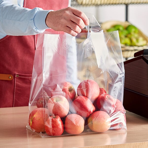Equipped with soft loop handles, this bag offers a comfortable and secure grip for easy carrying. Whether you're packaging fresh produce at a grocery store, offering take-out options at a restaurant, or providing customers with a convenient carrying option at your retail store, this clear polypropylene bag is a practical and versatile packaging solution for your business.