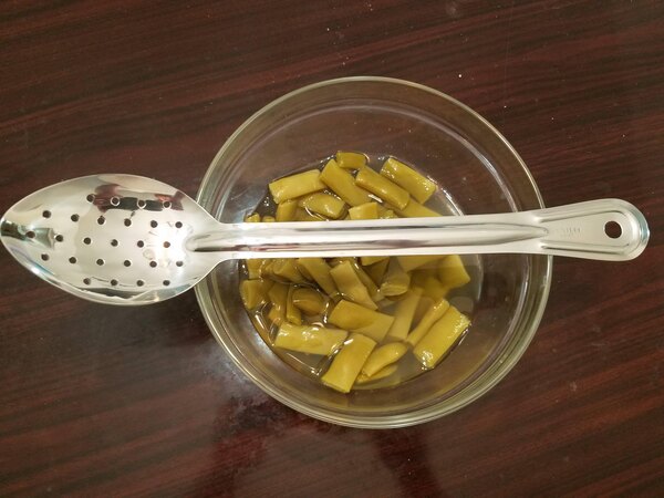 This is a great, basic perforated spoon. It is high quality, and stands up great in the dishwasher. The only negative feedback I have is that the sticker that comes on the back is difficult to remove.