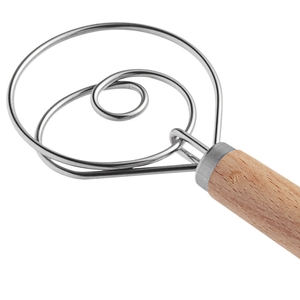 Where has this been my whole life? Still mixing up brownies and corn bread with a wooden spoon? Throw them away now! You won't need them with this little marvel! This lovely whip has a wood handle and a stainless steel end, and it effortlessly mixes up thick batters. I'll be buying extras as stocking stuffers, they're so fantastic. It is large enough for a 'regular size' mixing bowl, probably up to 6-8 quarts; anything much taller will need a longer handle.