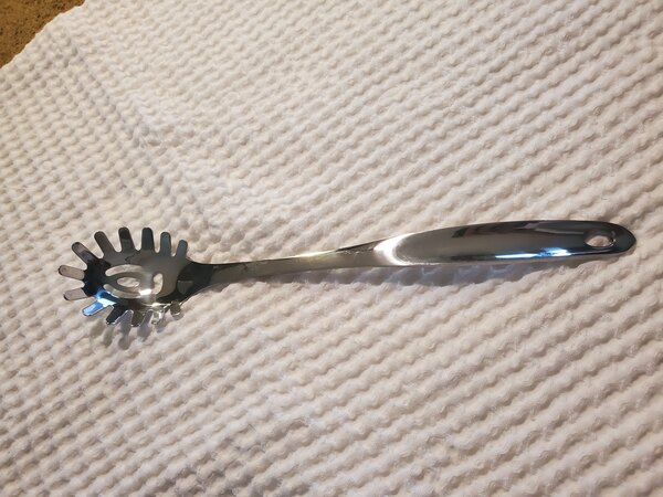 I love this fork. I use it for rice, salads, and pasta. Its very durable and sturdy. Its not that heavy or very lightweight but in the middle. Looks like it will last along time. I love that its just one piece stainless steel. It wont break or bend. Thats what I love about most of the stuff on webstaurantstore. They are made mostly of one piece stainless steel eliminating the chance of breakage.