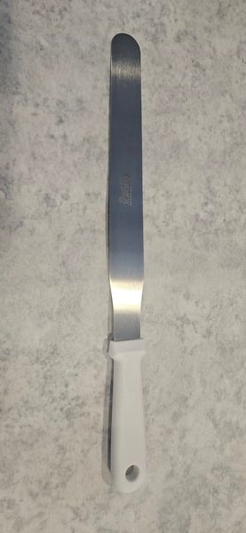 We love Choice Icing spatulas with the plastic handles. They are heavy enough to work with and yet not too heavy for smaller student hands.