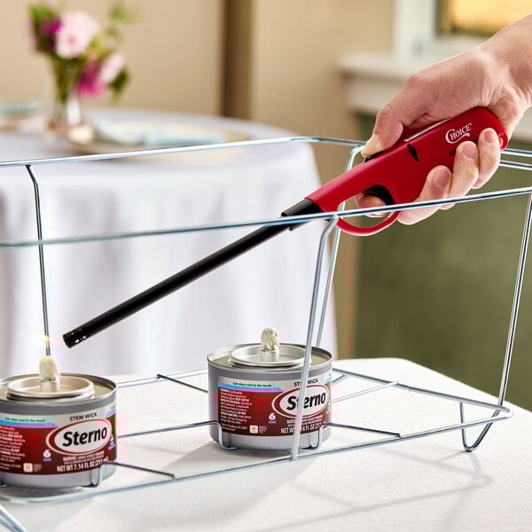 This Choice 14" extra-long multi-purpose lighter serves as a versatile and convenient tool for adding efficiency to your operations. Designed to accommodate a range of uses, this lighter is practical for lighting grills and chafing fuel in your restaurant or foodservice establishment. Not only is this lighter a reliable choice for cooking or heating applications, but it also adds the perfect ambiance to your business environment via lit candles, fireplaces, or even fire pits. What's more, this lighter is designed with an extra-long neck to keep you from reaching too close to the flames. This provides added safety and easier access to hard-to-reach spots such as pilot lights or deep candle holders.
