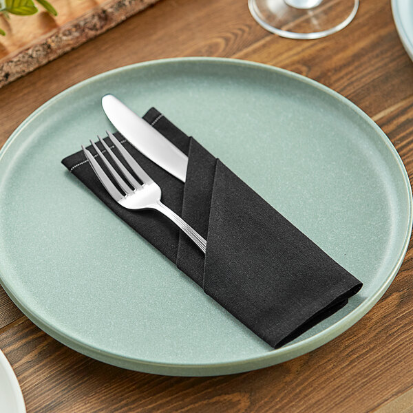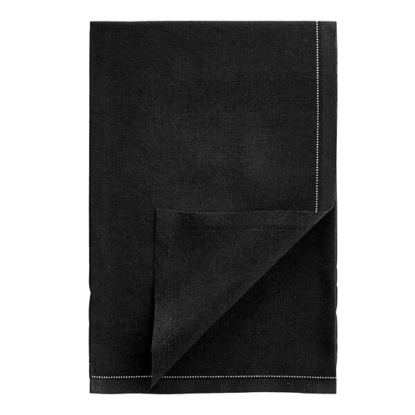 Featuring a simple, classic black design, this napkin easily matches a variety of decor and can be folded creatively to enhance your table presentations. Plus, its soft construction makes it perfect for draping over guests' laps or for cleaning up spills at your busy bar or restaurant.