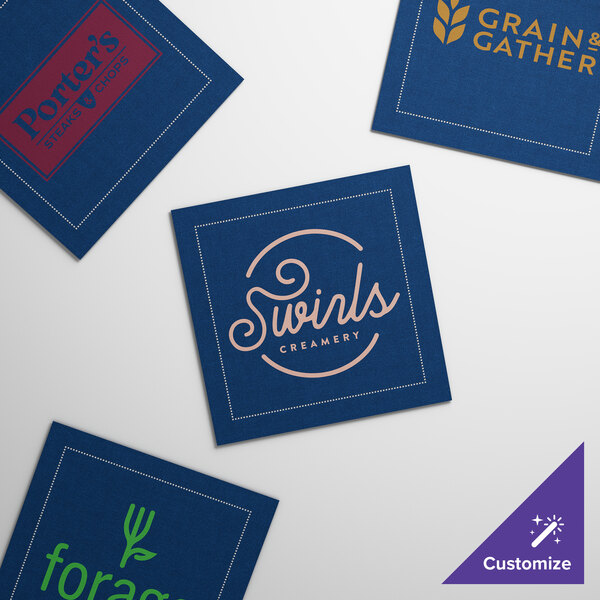 Choice 15 13/16" x 15 13/16" Customizable Navy Blue Single-Use Cotton Dinner Napkin - 25/Pack