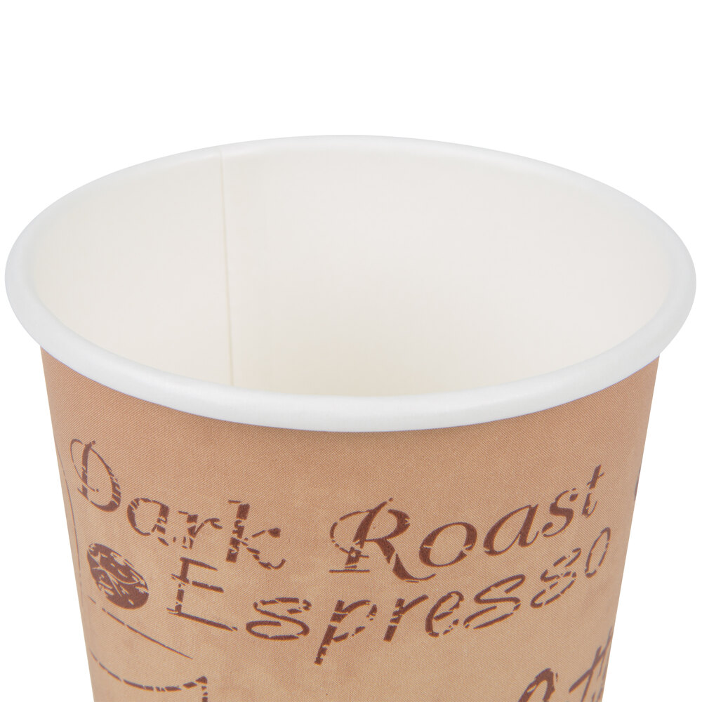 Both versatile and economical, this Choice hot coffee cup is the perfect beverage solution for your cafe, coffee shop, kiosk, concession stand, or convenience store. It features an attractive cafe design that provides a colorful alternative to plain white paper cups, and has a space-saving construction, allowing it to be placed in a convenient cup dispenser for compact storage and easy accessibility.