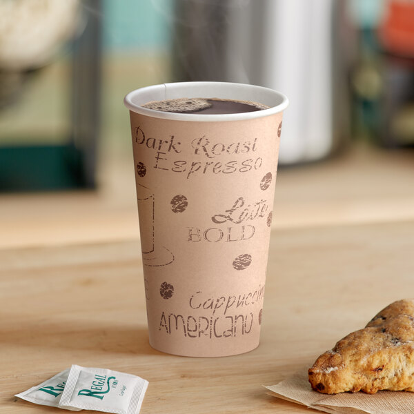 Serve your favorite hot beverages in style with this Choice 16 oz. paper hot cup with cafe design!