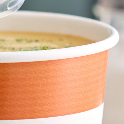 Made from double poly-coated paperboard, the container in this container and lid combo is durable and moisture-resistant. Use it for serving anything from light chicken noodle soup to thick, hearty stews. It ensures the combined rigidity and reliability you need in a take-out paper hot food cup and lid combo.