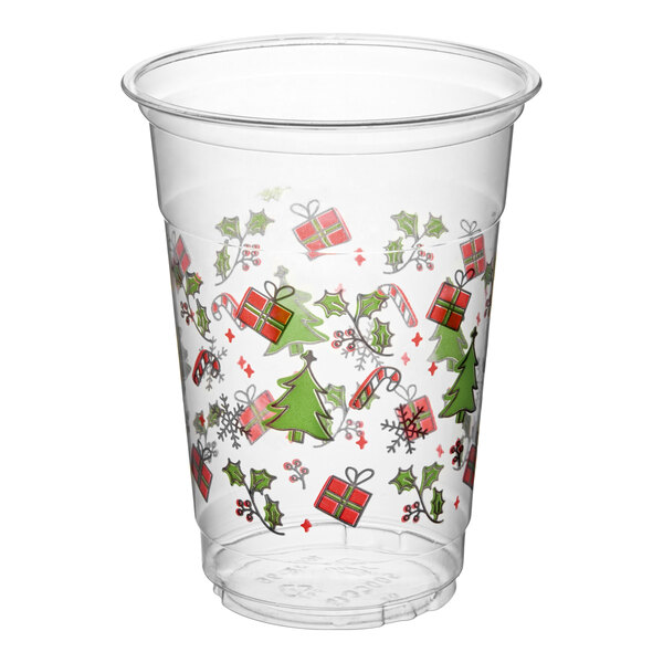 The crystal-clear plastic construction combined with a fun, holiday-themed design gives this disposable drinkware an upscale appearance, while also providing excellent clarity. The increased product visibility and engaging seasonal design will help to boost impulse sales for all of your thirst-quenching beverages.