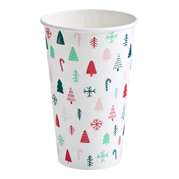 Serve up holiday cheer with the Choice 16 oz. modern Christmas print single wall paper hot cup!