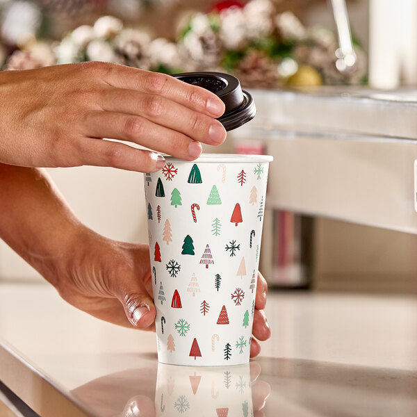 With its ample 16 oz. capacity, this cup is just the right size for customers who are looking for a mid-day pick me up. Use it to serve your signature, piping-hot coffees, teas, and lattes. Spread the holiday spirit with this stylish and functional Christmas hot cup!
