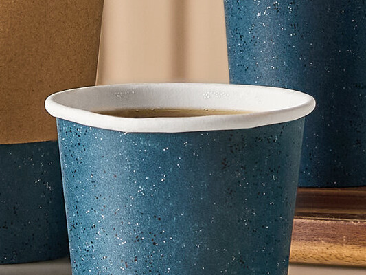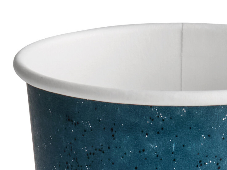 Both versatile and economical, this Choice hot coffee cup is the perfect beverage solution for your cafe, coffee shop, kiosk, concession stand, or convenience store. It features a visually appealing blue speckled design that adds a touch of fun to your drink presentation and has a space-saving construction, allowing it to be placed in a convenient cup dispenser for compact storage and easy accessibility.