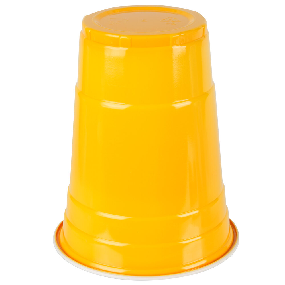 Boasting a 16 oz. capacity, the cup is just the right size for serving your guests ice-cold draft beer, signature punch, or soda. It's made of lightweight, durable polystyrene plastic with a vibrant yellow color and classic design, making it perfect for everyday use.