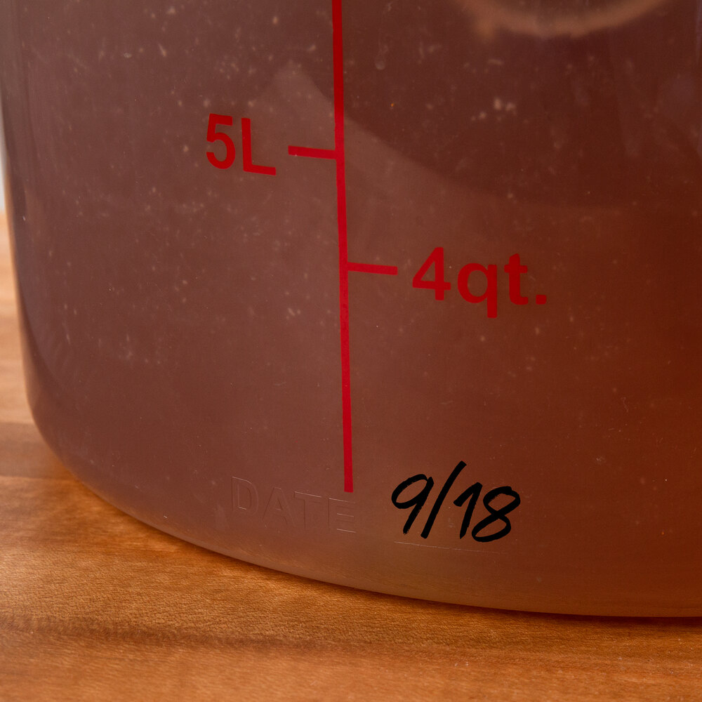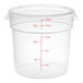 Bold red graduations are printed on the side of the container in both quarts and liters for easy, immediate measuring, saving you time and effort during food preparation. Easily identify and track the date that your food product was made using the reusable "date" indicator at the bottom of the container, or simply adhere a label (sold separately) to the side.