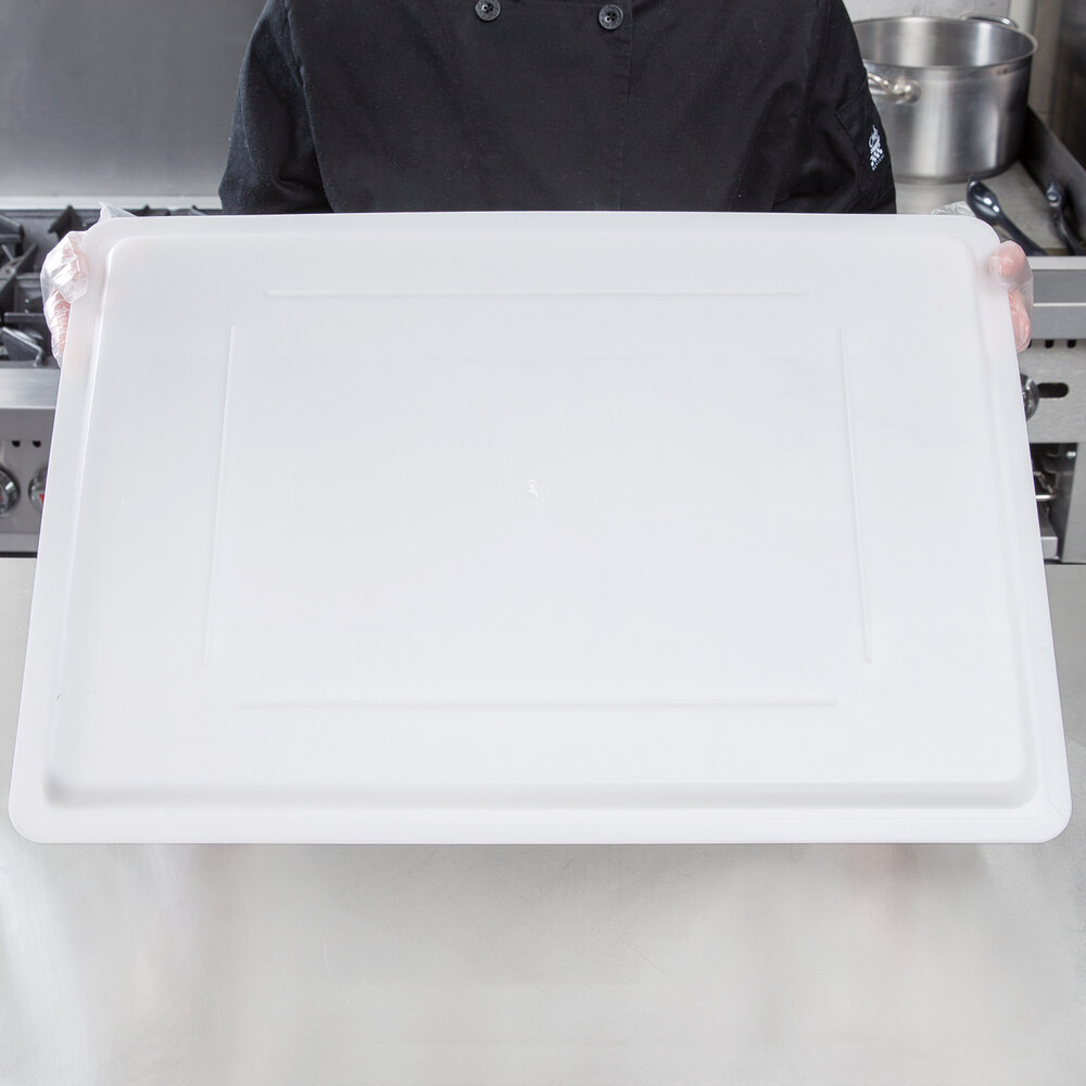 Use this Choice 18" x 26" white plastic food storage box lid to easily cover your food storage boxes to keep contents contained and protected from contaminants.