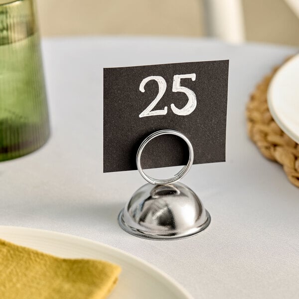 You can use this card holder to help your guests navigate to their respective tables, or identify reserved tables. This holder's round base provides optimum stability and ensures your signage remains stationary while its attractive chrome construction catches your diners' attention and brings a touch of elegance to your tabletop.