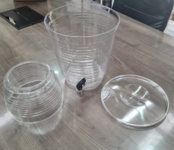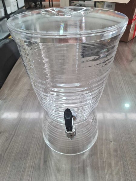 This beverage dispenser makes serving eye-catching refreshments effortless and fun! With a durable acrylic construction, it allows for optimal product visibility for easy identification and helps draw guests to the display for a refreshing drink.