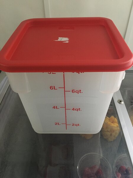 I bought the 6qt container and this lid to store flour, sugar, etc. However, little bits of red plastic kept flaking off the lid and falling down into the food being stored in the container so I stopped using them for food storage. Very disappointed in the quality of this lid and would not recommend it to anyone.