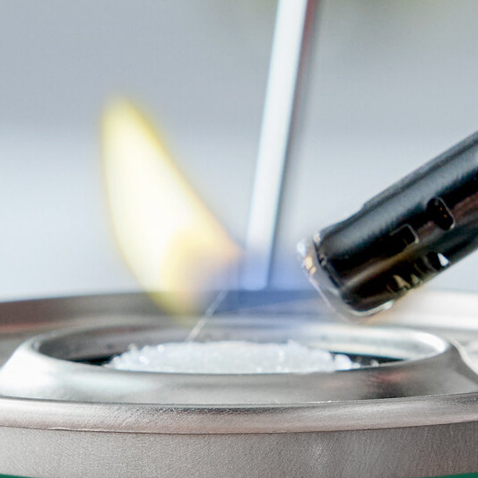 It features a high output thanks to a broad flame and hybrid design that combines the high heating power of gel fuel with the safety and efficiency of wick fuel through its innovative safe pad. The safe pad provides a wider and hotter flame than a traditional wick and is more resistant to wind. This makes it an excellent alternative to traditional wick fuel during shorter outdoor events!