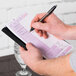 This is the perfect check, except so many of them come out of the box and fall apart! That's really inconvenient on a busy night to have an already separated check from the carbon. I have to go thank pick out the ones every night that are still intact. The rest go home for the kids to play with. But thats not what I'm interested in as a small resturant owner!