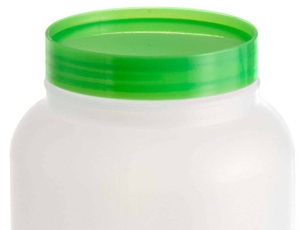 The translucent 2 qt. container is made of high density polyethylene with straight walls that won't harbor bacteria, and a ridge that accepts the cap while not in use so it doesn't get lost.