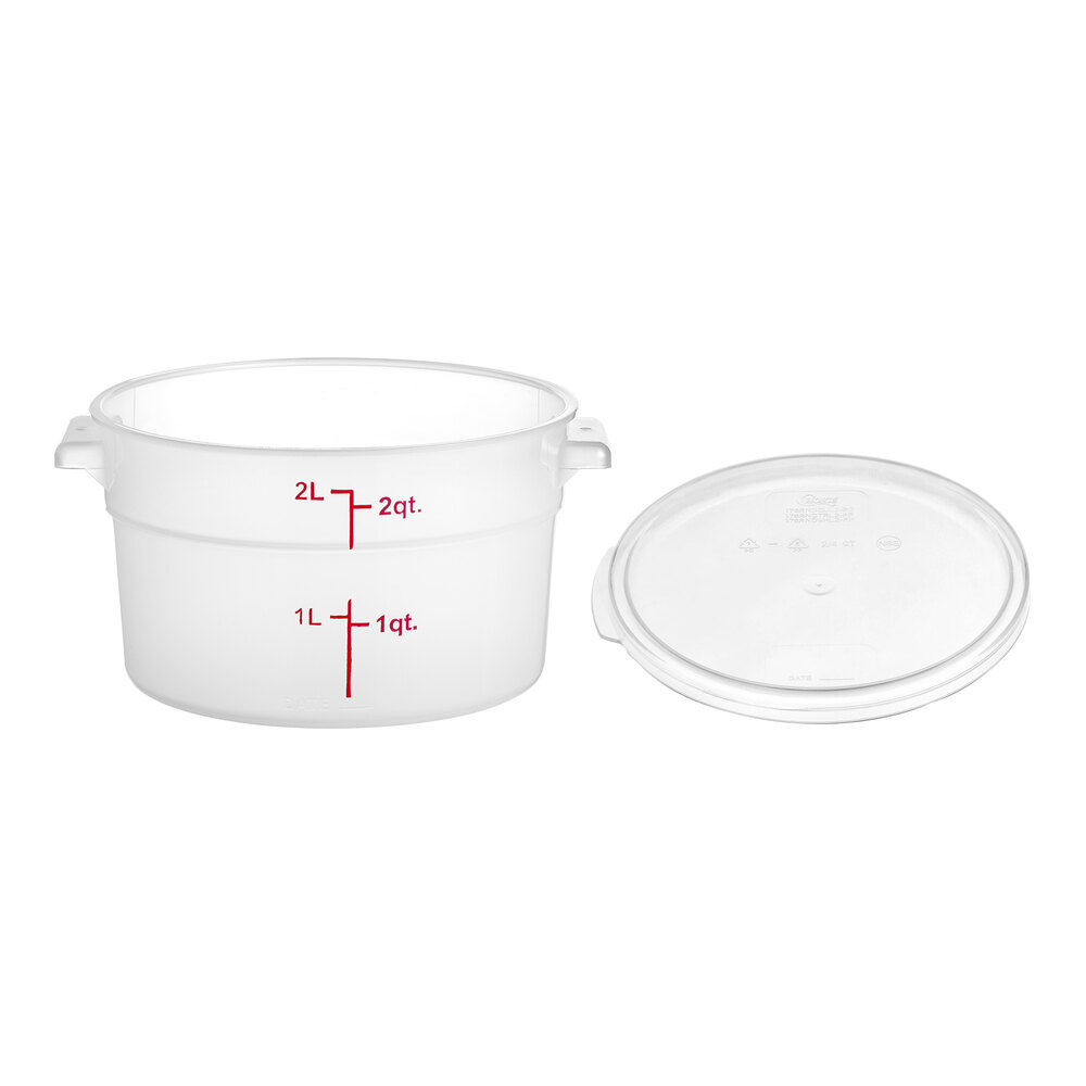Whether storing dry goods or prepped ingredients, this container is versatile and can handle temperatures ranging from -40 to 160 degrees Fahrenheit, making it ideal for a wide range of kitchen tasks. This Choice translucent round polypropylene food storage container with lid is perfect for restaurants, catering establishments, delis, and cafes that want to enhance their service and streamline their prep organization!