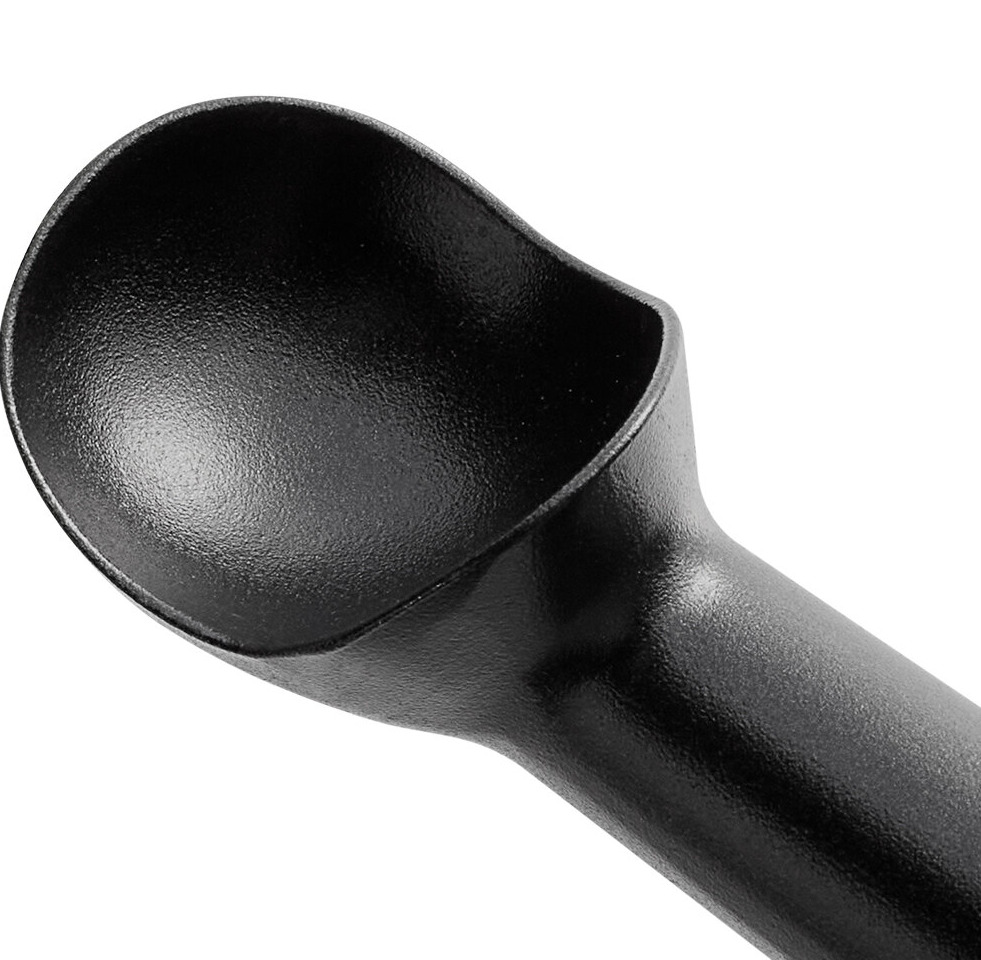 Designed for scooping hard ice cream, this scoop features a durable 1-piece cast aluminum construction with a non-stick coating that helps ensure smooth rolling and easy release of your patrons' favorite cold treats. The handle contains non-toxic defrosting fluid that enables easier and faster dipping. Plus, the defrosting handle helps prevent ice crystals from forming on the scoop in between uses.