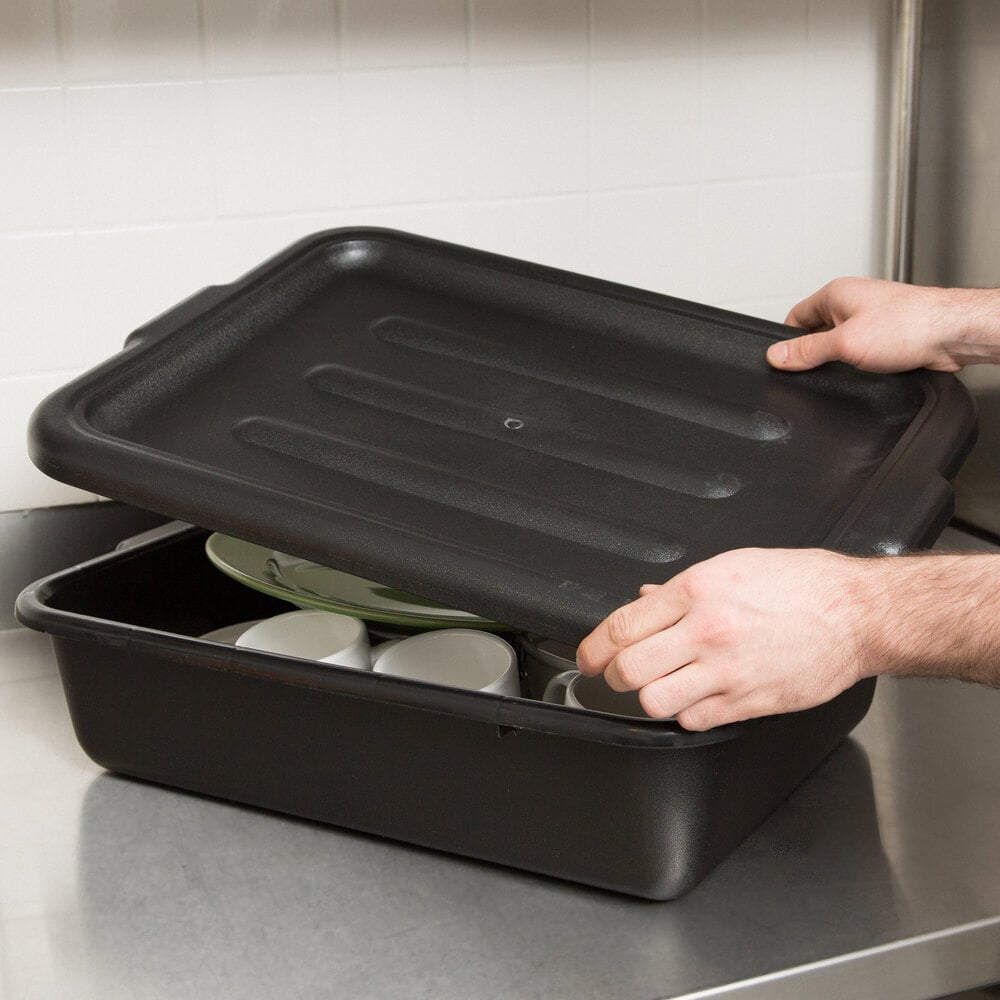 Ensure efficiency in your everyday cleaning operations with this Choice 20" x 15" x 5" black polypropylene bus tub with lid!