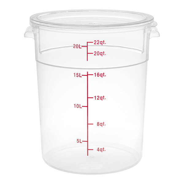 Bold red graduations are printed on the side of the container in both quarts and liters for easy, immediate measuring, saving you time and effort during food preparation. Easily identify and track the date that your food product was made using the reusable "date" indicator at the bottom of the container, or simply adhere a label (sold separately) to the side.