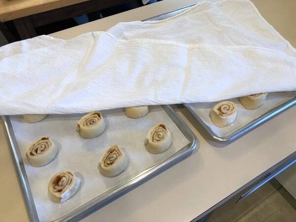 The Chef Revival Flour Sack Towel is an excellent product for covering your baked goods. The material is light enough that it will not prevent your dough from rising, and keeps them warm. I have not had any problem with them sticking to dough either. I highly recommend this product if you need one for baking.